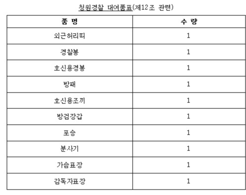 ▲ 청원경찰 대여품표